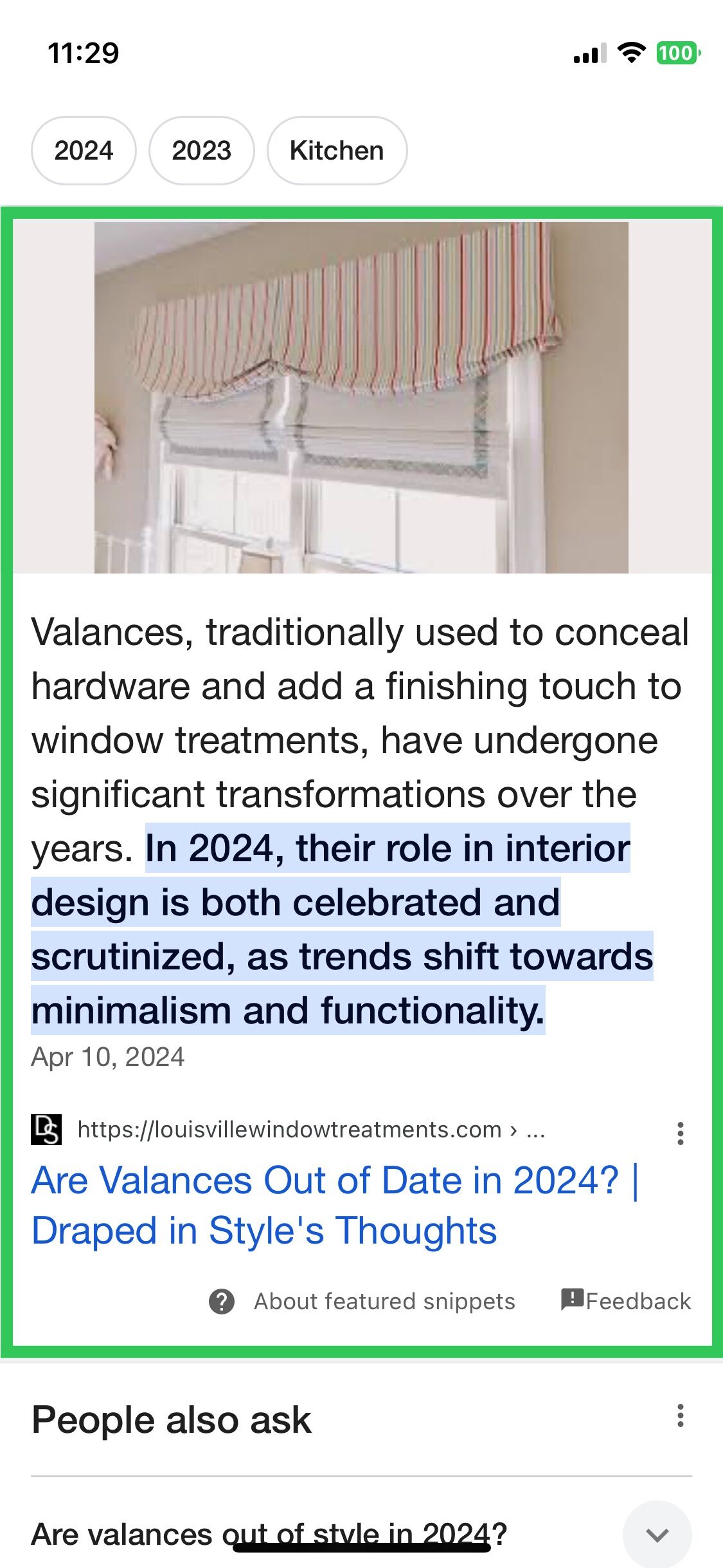 By structuring content in a Q&A format, we can increase the chances our content will be referenced by AI. Specifically, this entails using a commonly asked question as a header and including the corresponding answer as a body paragraph (see example below). Quite literally, this is the same process for optimizing for a featured snippet (or position 0) which was executed for a client below.