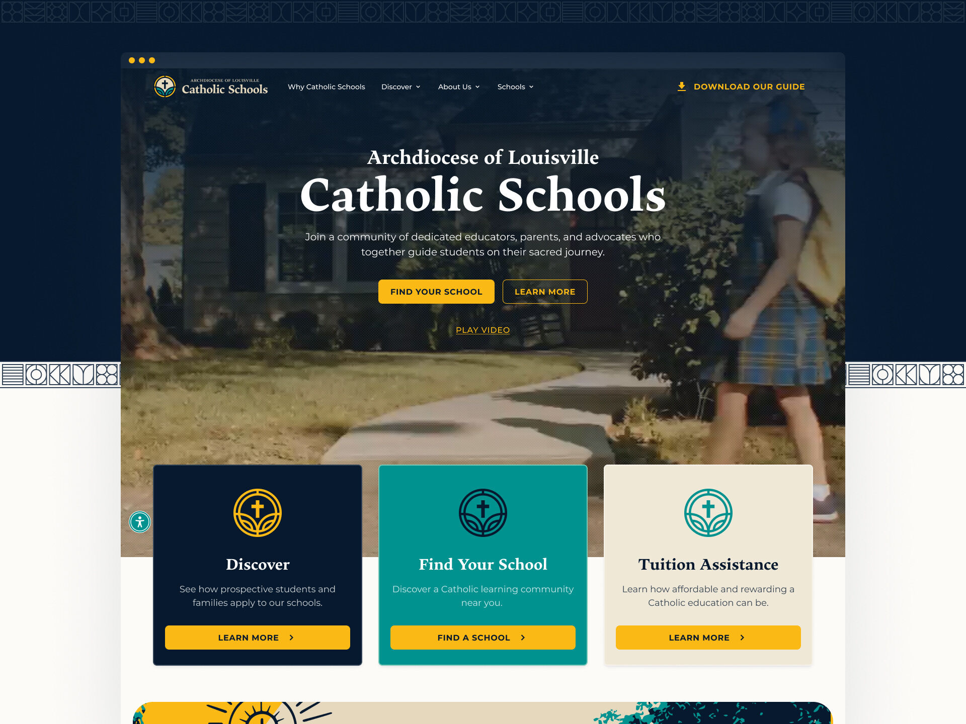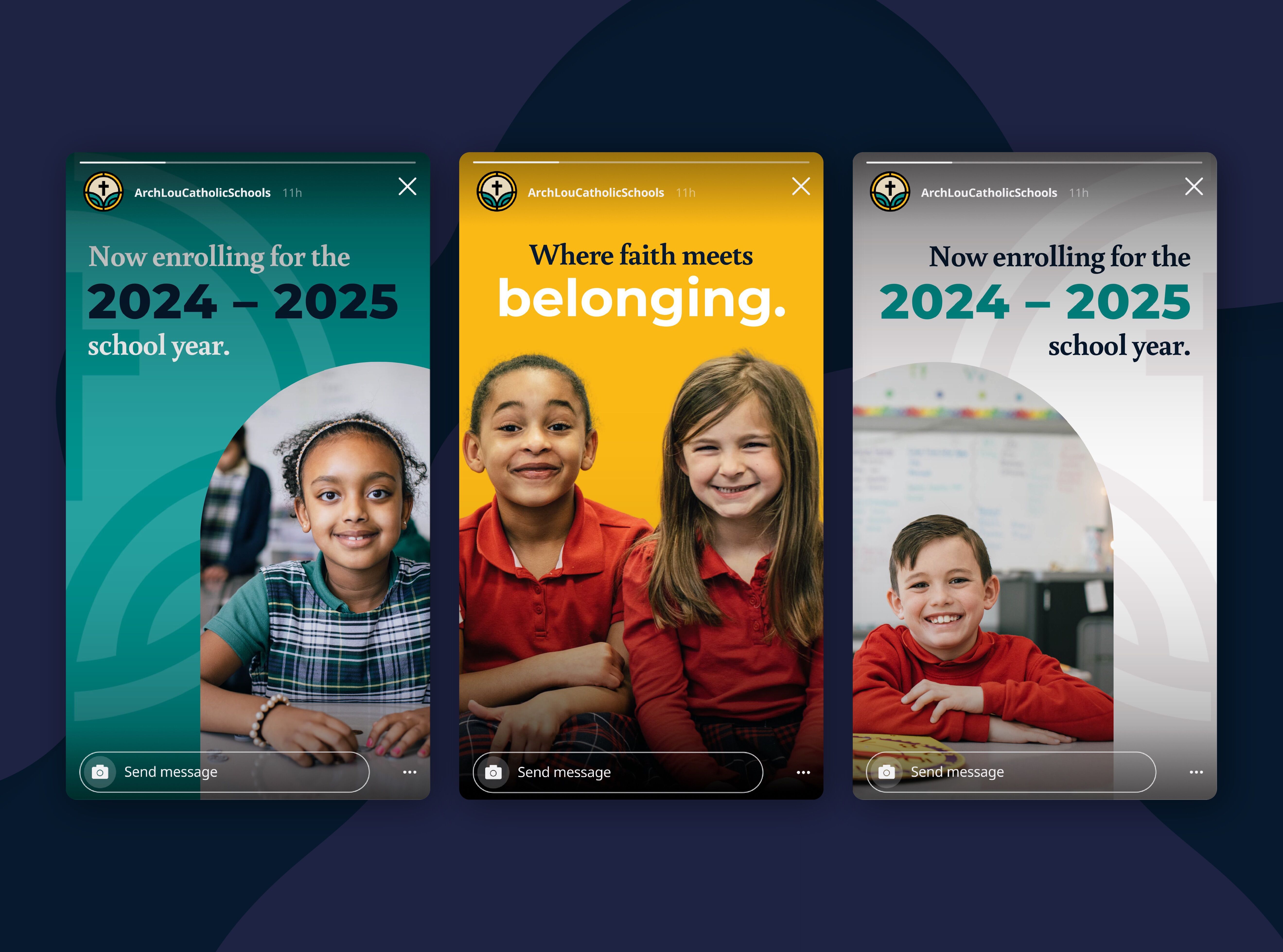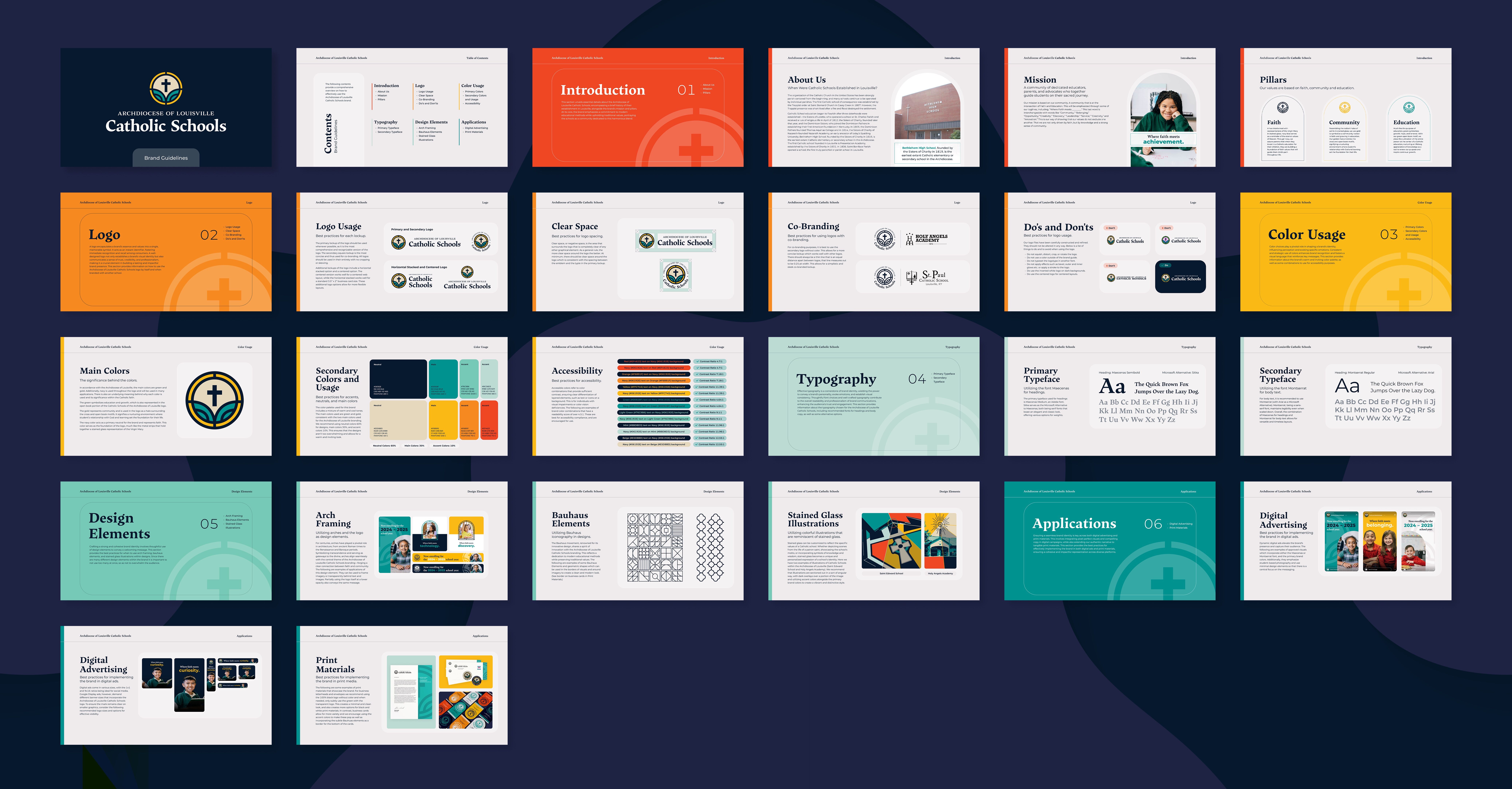 Our process began with focus groups involving school staff, parents, and parishioners to understand what differentiated archdiocese schools from schools in the region. One key idea emerged from our research: school as a community. These schools are more than places of learning. They are tight-knit communities where families, educators, and students grow together. This insight shaped our creative direction, leading us to build a brand that emphasized belonging and faith in a way that welcomed both Catholic and non-Catholic families.