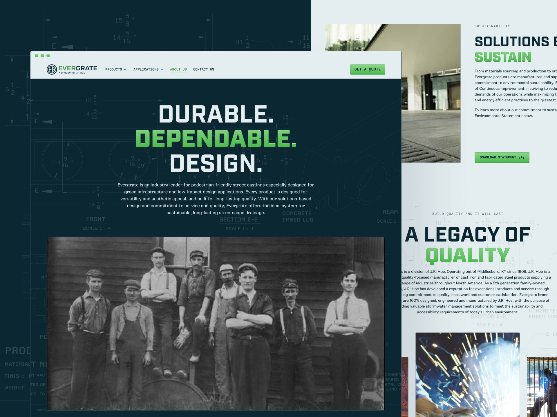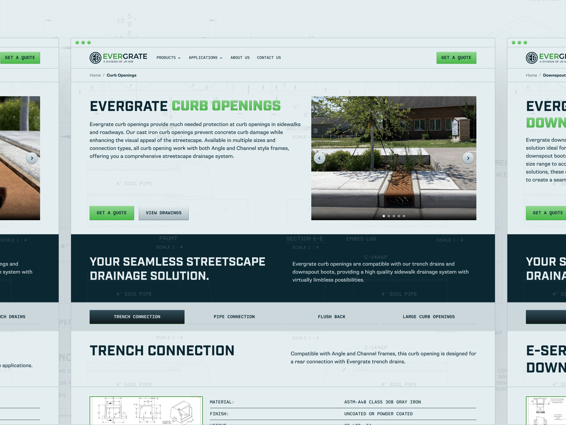 The new website delivered on Evergrate’s goals: a clean, professional platform that makes products and specifications easy to access, while clearly showcasing their value in practice.